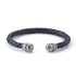 Black Woven Leather Bracelet with Sterling Silver End Caps