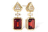 14 Karat Yellow Gold Drop Earrings with Emerald Shape Garnet, Round Gemstone and Natural Diamond Accents
