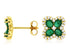 14K Yellow Gold Floral Halo Emerald and Diamond Oval Earrings
