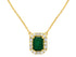 14 Karat Yellow Gold Emerald Stationary Halo Necklace with Natural Diamond Cable Chain