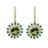 14K Yellow Gold Diamond and Turquoise Halo Drop Earrings with Peridot Accents - 2.00 Carat