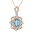 14 Karat Rose Gold Fancy Halo Drop Necklace with Aquamarine 0.68