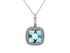 14K White Gold Cable Halo Necklace with Aquamarine Gemstone and Diamond Accents