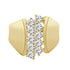 Elevate your style with this stunning ladies' ring crafted in 14 karat yellow gold. Featuring a double-line design with sparkling cubic zirconia gemstones, this elegant accessory is perfect for adding a touch of sophistication to any outfit. Make a statement with this exquisite piece.