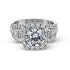 Elegant 18 karat white gold engagement mounting with a halo design and sparkling side stones. Features a stunning round-shaped cubic zirconia gemstone at the center, surrounded by dazzling natural diamonds for a truly mesmerizing piece. Ideal for those seeking a luxurious and sophisticated ring to symbolize everlasting love.