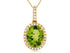 14 Karat Yellow Gold Halo Necklace with Peridot Gemstone and Natural Diamond Bail