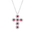 Elegant 14 Karat White Gold necklace features a radiant Halo design intertwined with a Cross, adorned with dazzling Natural Diamonds and a vibrant Ruby centerpiece. Perfect for those seeking a meaningful and luxurious accessory with a touch of spiritual symbolism.