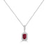 14 Karat White Gold Emerald-Shaped Ruby With Diamond Halo Necklace - 0.70 Carats