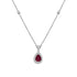 Elegant Pear Halo Drop Necklace in 14 Karat White Gold featuring a stunning Ruby gemstone surrounded by Natural Diamonds. This exquisite piece radiates sophistication and luxury, perfect for adding a touch of glamour to any outfit. Ideal for special occasions or as a timeless gift for a loved one.