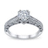 This vintage-style engagement mounting in 14 Karat white gold features intricate milgrain detailing and stunning side stones. The center setting accommodates either a cubic zirconia, gemstone, or natural diamond, allowing you to create a personalized and unique piece for your special moment.
