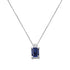 14K White Gold Blue Sapphire and Diamond Necklace with Emerald Shape Design