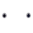 Elegant 14K white gold earrings featuring oval blue sapphires surrounded by a round natural diamond halo. Sapphire studs with a dazzling touch of diamonds for a sophisticated look. Ideal for adding a pop of color and sparkle to any outfit. Classic design perfect for daily wear or special occasions.