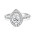 Stunning platinum Sz5 pear engagement mounting with a dazzling halo design and exquisite side stones. This ring captures the beauty and elegance of a romantic proposal, symbolizing everlasting love and commitment. Perfect for a memorable and timeless gesture of love.