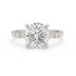 Elegant 14 Karat White Gold Engagement Mounting featuring round and emerald alternating stones on the band. Sparkling side stones accent the center stone beautifully. A stunning choice to showcase your precious diamond or gemstone. Elevate your ring with this exquisite design that shines from every angle.
