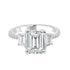 Beautiful 14K white gold engagement mounting with a stunning trapezoid-cut natural diamond center stone flanked by two sparkling side stones. This elegant 3-stone ring boasts impeccable craftsmanship and timeless design. Perfect for celebrating your love and commitment.