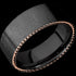 Elegant and rugged, our men's wedding band features a unique distressed design with a 14k rose gold side braid. Crafted from durable zirconium, this stylish ring is perfect for any groom looking for a modern, masculine touch to their special day.