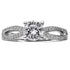 Elegant palladium engagement mounting with round shape, cubic zirconia side stones, and natural diamond accent. Perfect for showcasing your chosen gemstone.